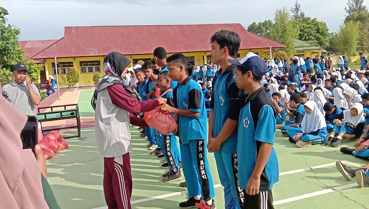 Jugam desediakan paket kepada belasan siswa yang dianggap berhak menerimanya, penyerahan paket dilakukan oleh kepala Sekolah dan Dewan Guru.
