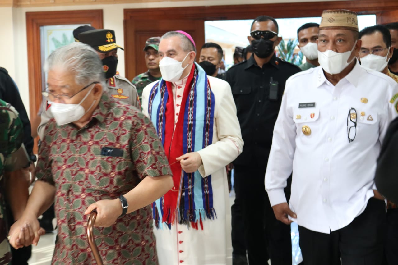 Ambon, -Suaratimurnewscom Gubernur Provinsi Maluku Murad Ismail, menyambut kedatangan Duta Besar Vatikan untuk Indonesia Mgr. Tarcisio Bertone S.D.B. Piero Pioppo di VIP Room Bandara Udara Internasional Pattimura Ambon, Jumat, (22/04/2022).