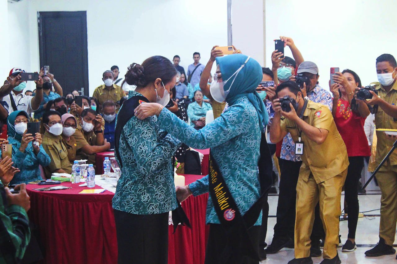 Ambon, -Suaratimurnewscom Ketua Tim Penggerak Pemberdayaan dan Kesejahteraan Keluarga (TP-PKK) Provinsi Maluku, Ny. Widya Pratiwi Murad, mengukuhkan Ketua TP-PKK Kota Ambon Felicia Maria Wattimena sebagai Bunda Generasi Berencana (GenRe) Kota Ambon di Hotel Marina, Selasa, (21/06/2022).