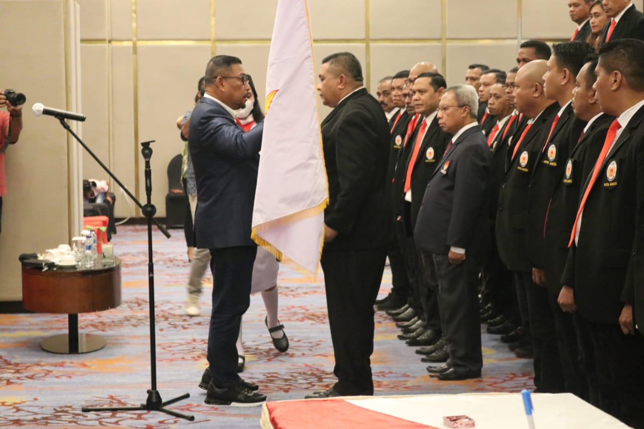 Ambon- Suaratmurnews.com Ketua Umum (Ketum) Komite Olahraga Nasional Indonesia (KONI) Provinsi Maluku Murad Ismail, melantik Agus Ririmase sebagai Ketum KONI Kota Ambon masa bakti 2022 – 2026 di Ball Room Banda Naira Swiss-Belhotel, Jumat, (15/07/2022).