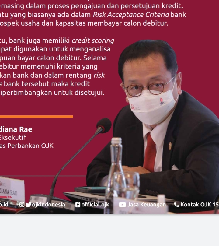Selain itu, bank juga memiliki credit scoring yang dapat digunakan untuk menganalisa kemampuan bayar calon debitur. Selama calon debitur memenuhi kriteria yang ditetapkan bank dan dalam rentang risk appetite bank tersebut maka kredit dapat dipertimbangkan untuk disetujui.(*)
