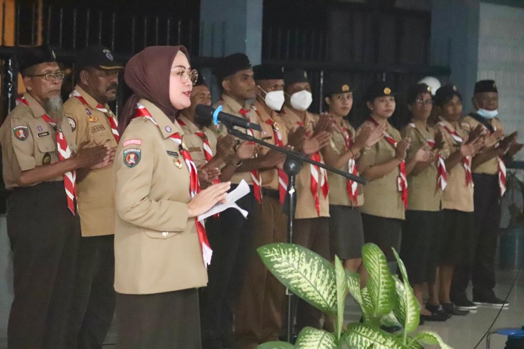 Ambon, -Suaratimurnews.com Ketua Kwartir Daerah (Kwarda) Gerakan Pramuka Maluku Widya Pratiwi Murad, melepas 11 Kwartir Cabang (Kwarcab) Kabupaten/Kota se-Maluku (Kontingen Daerah Maluku) menuju Jambore Nasional (Jamnas) ke-11 Jakarta, di Bumi Perkemahan dan Graha Wisata Pramuka (Buperta) Cibubur, Jakarta Timur, di lantai II Terminal Tunggu, Pelabuhan Yos Sudarso, Kamis, (28/7/2022).