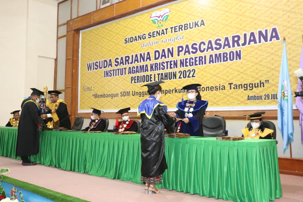 Ambon-Suaratimurnewscom Wakil Gubernur Maluku, Barnabas Nathaniel Orno menghadiri Wisuda Sarjana dan Pasca Sarjana periode I Tahun 2022 Institut Agama Kristen Negeri (IAKN) Ambon di Aula kampus IAKN, Jumat (29/7/2022).