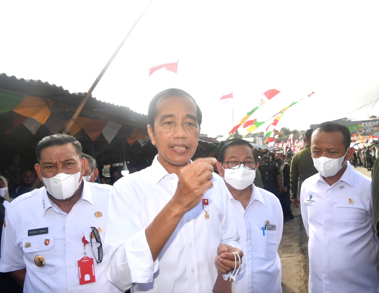 Orang nomor satu di republik ini nampak melempar senyum dan menyalami warga yang berebut menyalaminya. Bersama Gubernur Murad, dia lantas berkeliling di dalam pasar seraya menyapa masyarakat.