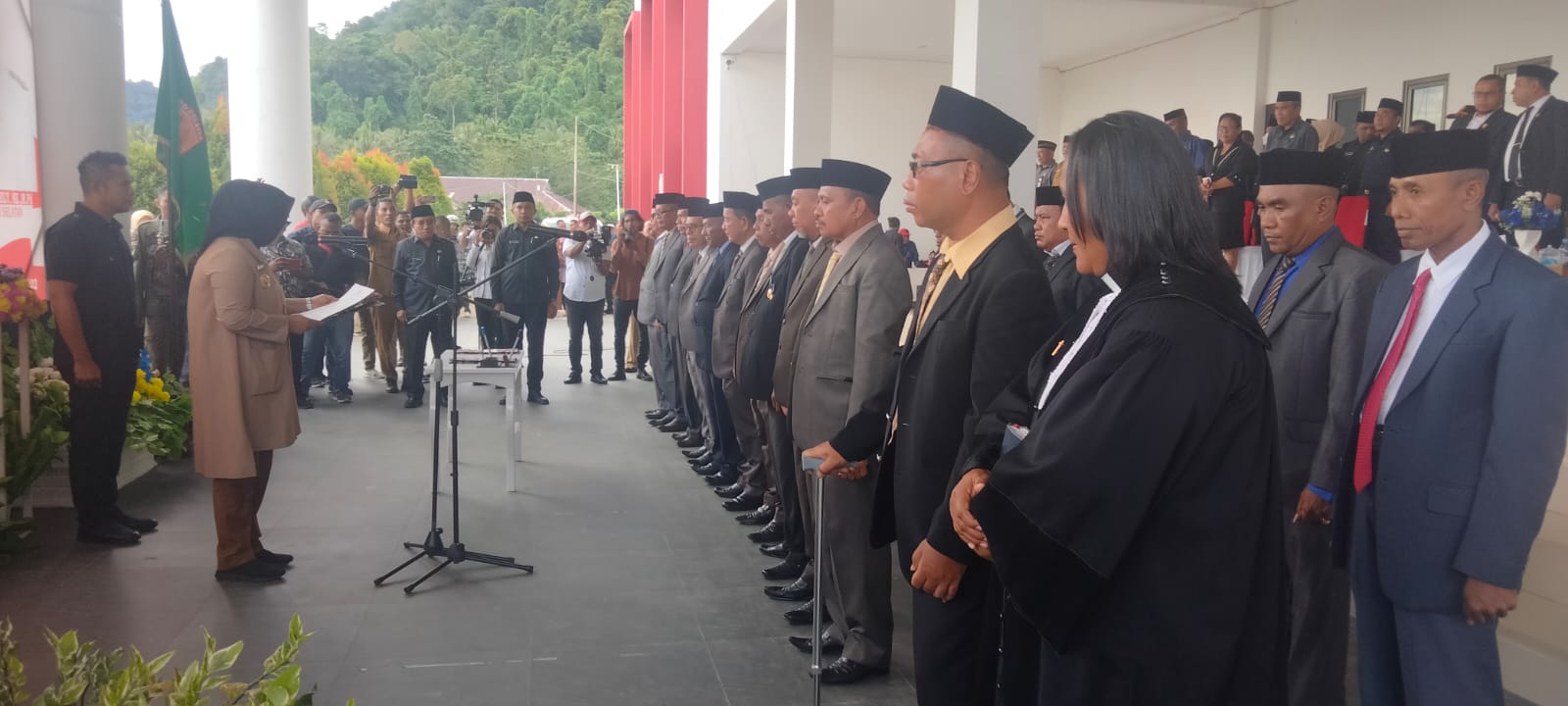 Namrole–Suaratimurnewscom,- Bupati Kabupaten Buru Selatan (Bursel) Hj Safitri Malik Soulisa melantik dan pengambilan sumpah jabatan pimpinan tinggi pratama (Esalon II) sebanyak 11 orang berdasarkan SK Bupati nomor 823/192 Tahun 2022 dan pejabat administrator (Esalon III) sebanyak 6 orang berdasarkan SK Bupati nomor 800/193 Tahun 2022 di lingkup Pemerintah Daerah Kabupaten Bursel Tahun 2022. Selasa Sore 11/10 2022.