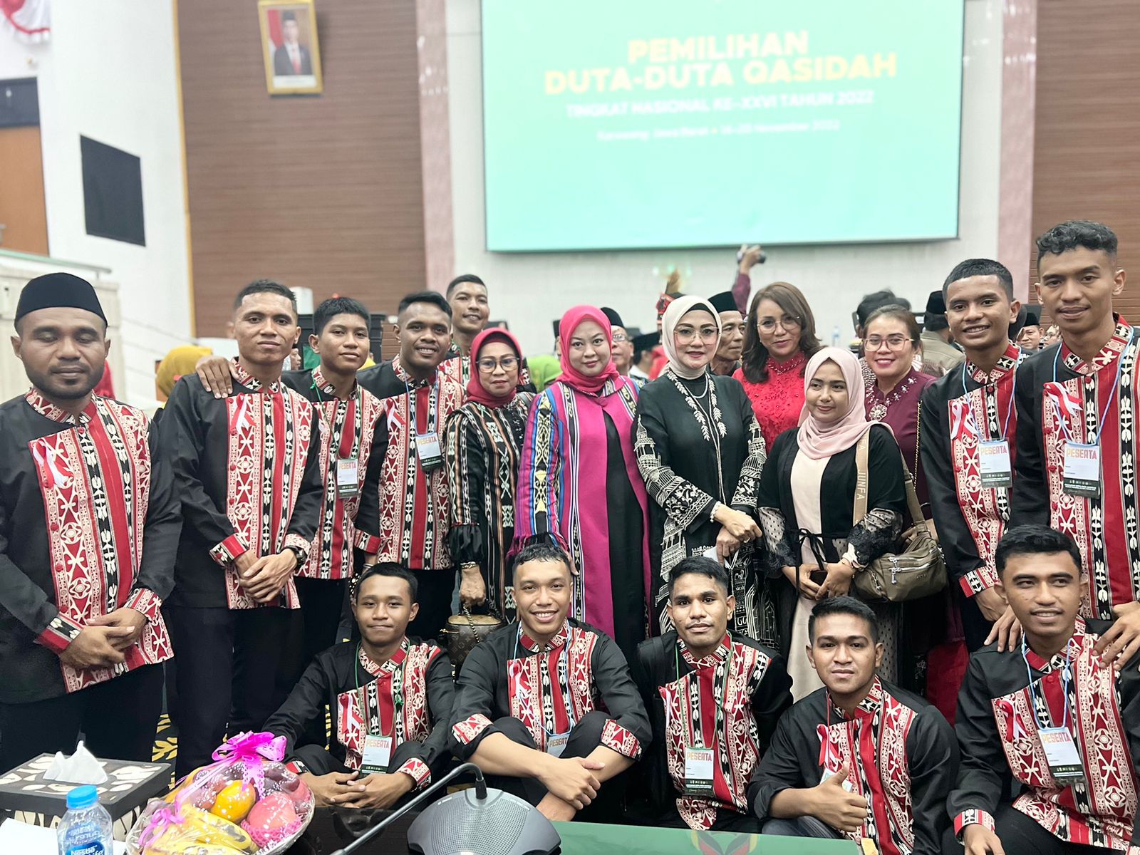 Karawang- Suaratimurnews.com Ina Latu Maluku, Ny. Hj. Widya Pratiwi Murad Ismail yang juga selaku Ketua Dewan Pimpinan Wilayah Lembaga Seni dan Qasidah Indonesia (DPW-LASQI) Provinsi Maluku, menghadiri acara Pembukaan Pemilihan Duta-Duta Qasidah Tingkat Nasional Ke-XXVI Tahun 2022, yang berlangsung di Kota Karawang, Provinsi Jawa Barat, Rabu malam (17/11/2022).