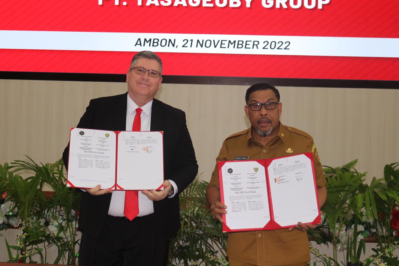 Penandatanganan MoU ini, digelar di Kantor Gubernur Maluku, antara Gubernur Maluku Murad Ismail dengan Chief Executive Officer (CEO) PT. Tasageoby Group Mr. Stuart Townley Janes.