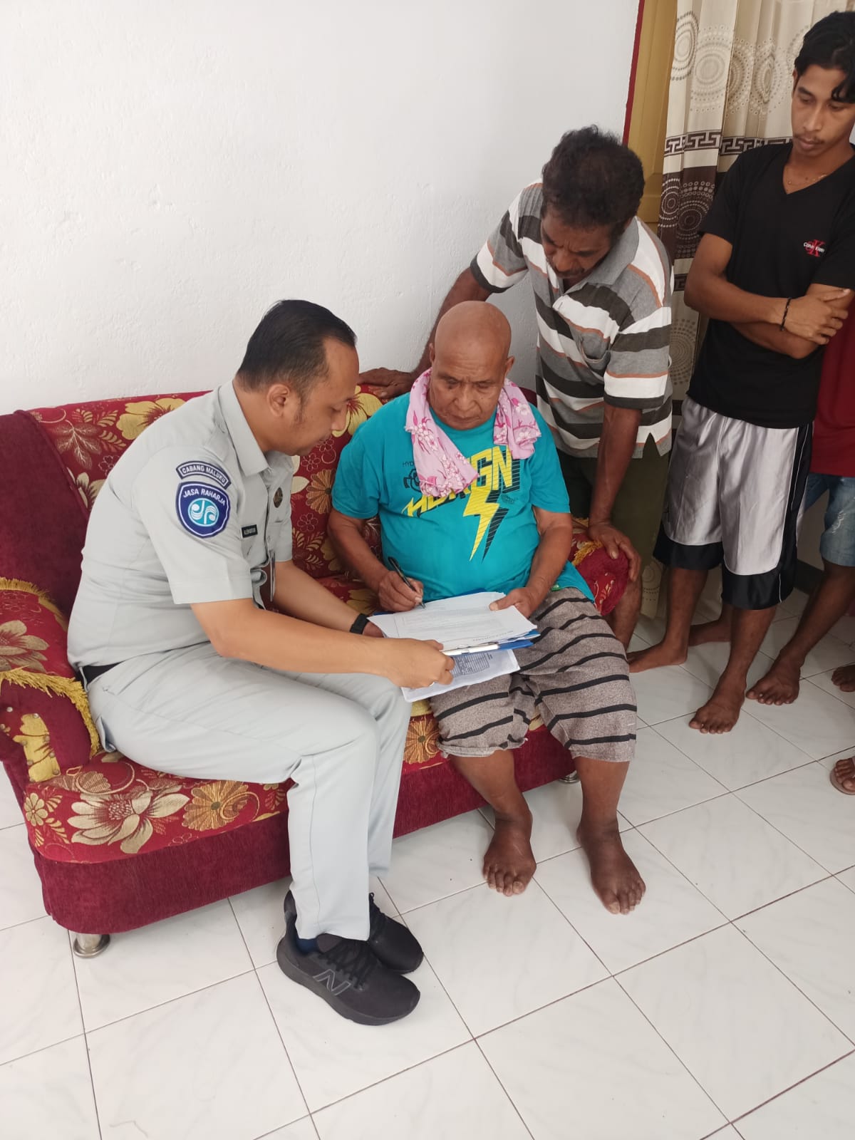 Petugas Mobile Service PT Jasa Raharja Cabang Maluku, Sdr. Allen Katuuk langsung melakukan survey dan memastikan ahliwaris korban di Negeri Porto Kecamatan Saparua Maluku Tengah.