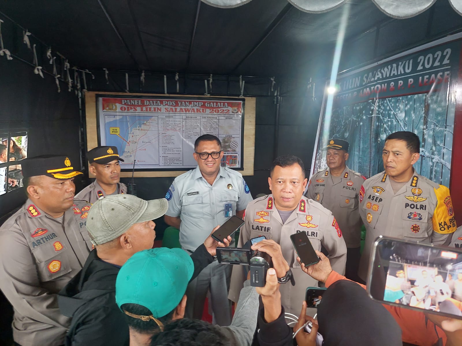 “Bersama Bapak Kapolda Maluku, kami melakukan pengecekan kesiapan Pengamanan PAM Nataru ke sejumlah Pos PAM Nataru di Kota Ambon di Posko di Pelabuhan Yos Sudarso Ambon dan Pos PAM ” Ungkap Herman Haurissa, Kepala PT Jasa Raharja Cabang Jumat 29/12/2022