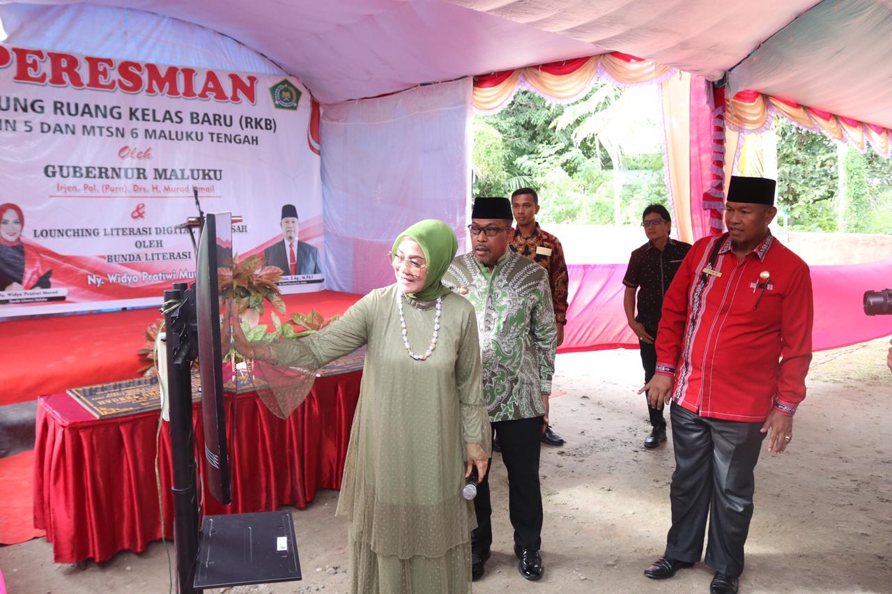Tulehu -Suaratimurnewscom Bunda Literasi Provinsi Maluku, Widya Pratiwi Murad, Jumat (17/3/2023) melaunching Literasi Digital Madrasah, program Kantor Kementerian Agama Provinsi Maluku yang dipusatkan di Sekolah Madrasah Ibtidaiyah Negeri (MIN) 1 Tulehu, Kecamatan Salahutu, Kabupaten Maluku Tengah.