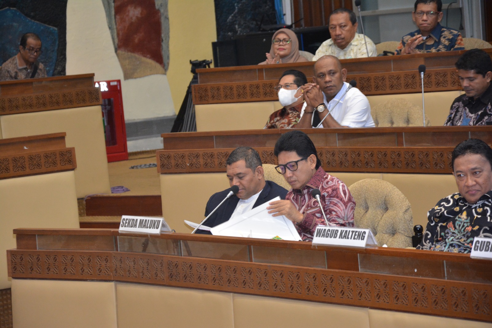 Jakarta – Gubernur Maluku Murad Ismail menugaskan Sekda Maluku Sadali Ie bersama ketua tim hukum gubernur Maluku Dr. Fahri Bachmid,S.H.,M.H. untuk menghadiri rapat panitia kerja (Panja) pembahasan rancangan UU Provinsi bersama komisi II DPR RI Senin 27/3/2023 di Jakarta