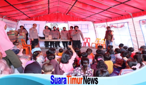 Ambon -Suaratimurnewscom Personel Polresta P Ambon & PP Lease memberikan pelayanan trauma Healing kepada warga korban kebakaran jalan Pala kecamatan Sirimau Kota Ambon bertempat di lokasi pengungsian Pasar Gotong Royong belakang Ambon Plaza. Sabtu (20/5/2023).