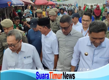 Ambon,-Suaratimurnewscom- Pejabat Walikota Ambon Bodewin Wattimena bersama menteri perdagangan Zulkifli Hasan melalukan peninjauan pada pasar Mardika Kota Ambon untuk melihat dan memastikan kestabilan harga.
