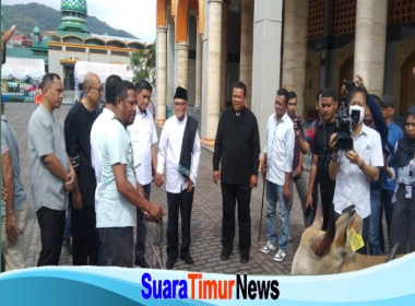 Ambon -Suaratimurnewscom Penjabat Walikota Kota Ambon Bodewin Wattimena serahkan satu ekor sapi untuk di kurbankan di Masjid raya Al-fatah Ambon untuk memperingati hari raya idul Adha 1444 H.