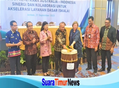 Ambon -Suaratimurnews.com Mewakili Gubernur Maluku, Pieterson Rangkoratat Asisten Adminstrasi Umum Setda Maluku bersama Counsellor for Human Development Departement of Foreign Affairs and Trade Hannah Derwent, melaunching Program Sinergi dan Kolaborasi Untuk Akselerasi Layanan Dasar (SKALA) di Provinsi Maluku, pada Kamis 21 September 2023, berpusat di Swissbel Hotel.