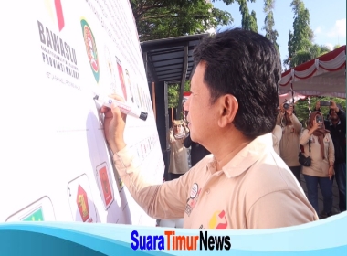 Ambon -Suaratimurnews.com Sekretaris Daerah Maluku Ir. Sadali Ie, M.Si., IPU, ikuti Apel Siaga Deklarasi Kampanye Damai di bawah sorotan tema “Baku Kele Awasi Vor Biking Bae Pemilu Serentak 2024”, dengan tagline Bersama Rakyat Awasi Pemilu Bersama Bawaslu Tegakkan Keadilan Pemilu, pada Kamis (23/11/2023), bertempat di Taman Pattimura Ambon.