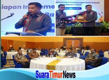 Ambon, Penjabat Walikota Ambon Bodewin Wattimena memberikan apresiasi pada kegiatan bimbingan teknis implementasi perlindungan data pribadi yang di gelar oleh Kementerian Komunikasi dan Informatika Republik Indonesia ( Kemenkominfo RI ) yang berlangsung pada hotel the Natsepa,Kamis ( 22/02/24)
