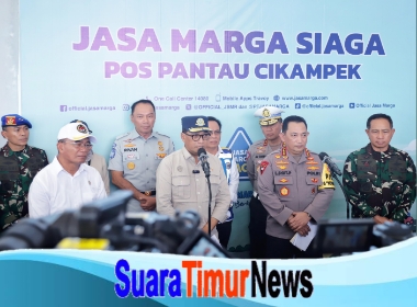 Cikampek – Suaratimurnews.com Direktur Utama Jasa Raharja Rivan A. Purwantono, bersama Menko PMK Prof. Dr. Muhadjir Effendy, M.A.P., Menteri Perhubungan Dr. Ir. Budi Karya Sumadi; Kapolri Drs. Listyo Sigit Prabowo, M.Si., Panglima TNI Jenderal TNI H. Agus Subiyanto, S.E., M.Si., dan Kakorlantas Polri Irjen. Pol. Dr. Drs. Aan Suhanan, M.Si., melakukan rapat koordinasi dan evaluasi mudik dan arus balik Lebaran 2024 di Kantor Jasa Marga, GT Cikatama Km 70, Senin (15/04/2024).