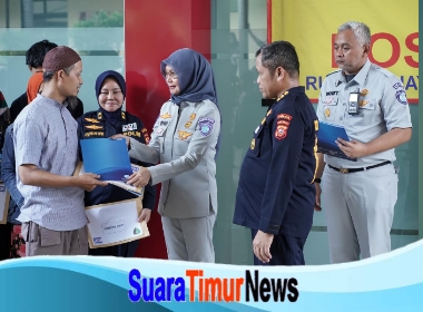 Jakarta, –Suaratimurnews.com Direktur Operasional Jasa Raharja Dewi Aryani Suzana, menyerahkan santunan kepada 11 ahli waris korban kecelakaan lalu lintas yang terjadi di KM 58 Jalan Tol Jakarta-Cikampek beberapa waktu lalu.
