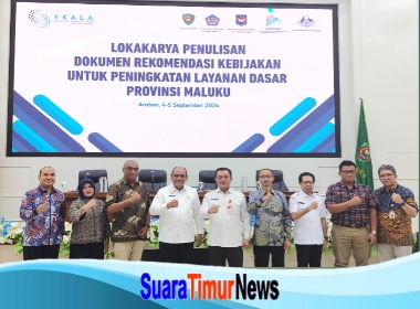 Ambon,-Suaratimurnews.com Skala bersama dengan Pemerintah Provinsi Maluku melaksanakan, Lokakarya Penulisan Dokumen Rekomendasi Kebijakan untuk Peningkatan Layanan Dasar Provinsi Maluku, pada Rabu (4/9/2024) bertempat di Aula Lantai 7 Kantor Gubernur Maluku.