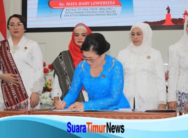 Ambon –Suaratimurnews.com Maya Baby Rampen Lewerissa Ketua Tim Penggerak PKK Provinsi Maluku yang juga selaku Ketua Pembina Posyandu Provinsi Maluku dan Ketua Dekranasda Provinsi Maluku, secara resmi melantik Ketua TP PKK / Ketua Pembina Posyandu dan Ketua Dekranasda Sembilan Kabupaten Kota di Provinsi Maluku Periode 2025-2030 di Aula Lantai 7 Kantor Gubernur Maluku, Selasa (11/3/2025).
