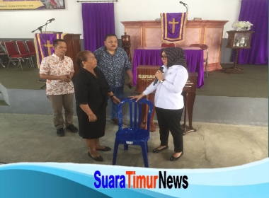 Ambon,Suaratimurnews.com Wakil Walikota Ambon Ely Toisutta Serahkan bantuan 100 bantal Semen untuk pembangunan gereja Christy Natalia dan bantuan kursi bagi unit satu yang berlangsung pada gedung gereja Christy Natalia,Rabu ( 19/03/25).