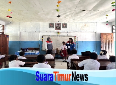 Kepala Sekolah SDN Inpres Doromena, Laurensius Bao Lile menyambut kedatangan Relawan Pertamina atas pelaksanakan PEN 8.0 di sekolah tersebut.