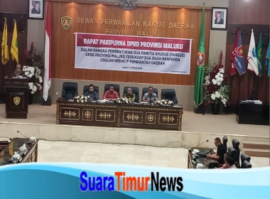 Ambon,-Suaratimurnews.com Dewan Perwakilan Rakyat Daerah (DPRD) Provinsi Maluku menggelar rapat paripurna dalam rangka pembentukan dua panitia khusus (pansus) untuk membahas dua rancangan peraturan daerah (ranperda) usulan Pemerintah Provinsi Maluku, Kamis (5/3/2026).